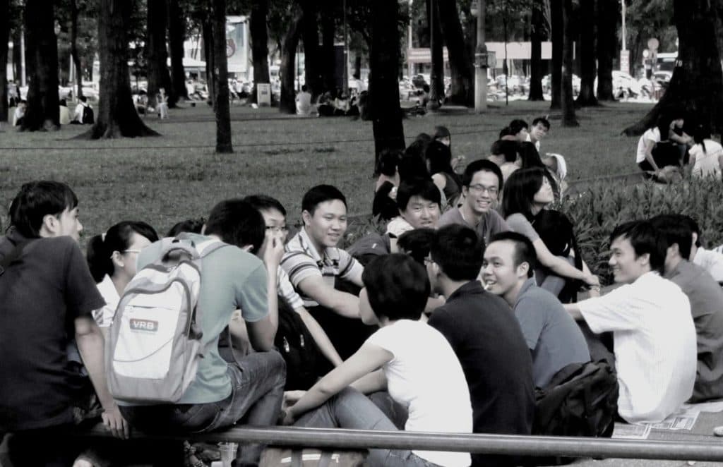 At 5 o’clock in the afternoons in Saigon, high schools and universities disgorge their students into the busy streets. Dusk is one of the coolest times of day, and many of these students head for one of the city’s parks, where they buy food and drink from street vendors and sit on the grass talking into the evening hours – this is Cà Phê Bệt.