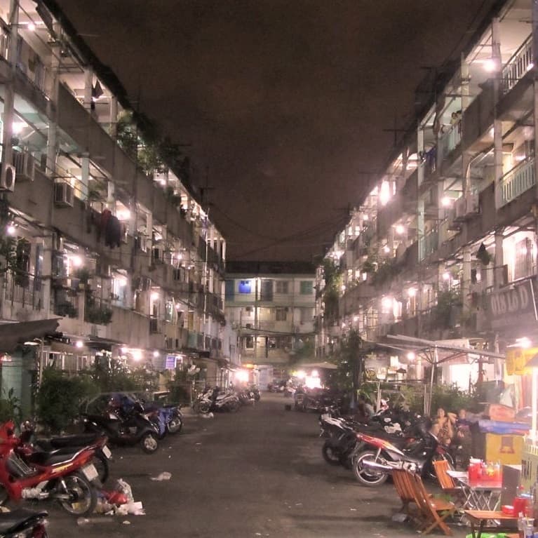 Throughout Saigon, there are clusters of crumbling old apartment complexes, all of which are on the verge of either collapse or demolition. Living conditions appear cramped and grim but, outside on the sidewalks, the street life and street food is among the best and most vibrant in the city…
