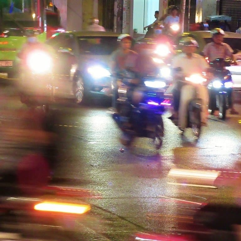 Riding a motorbike in/out of Saigon (Ho Chi Minh City) & Hanoi can be congested & polluted, but some times of the day are better than others…