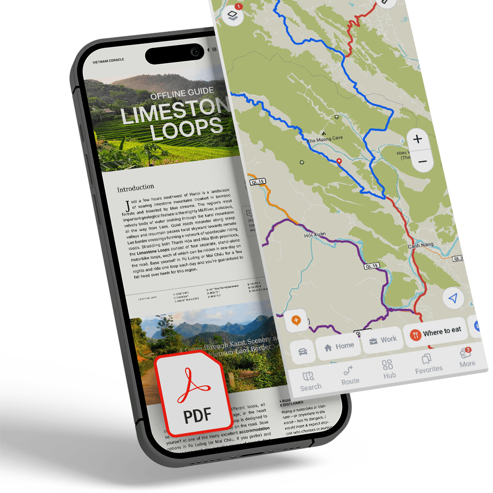 Ride 4 loops through limestone karst scenery & bamboo forests near the Vietnam-Laos border…