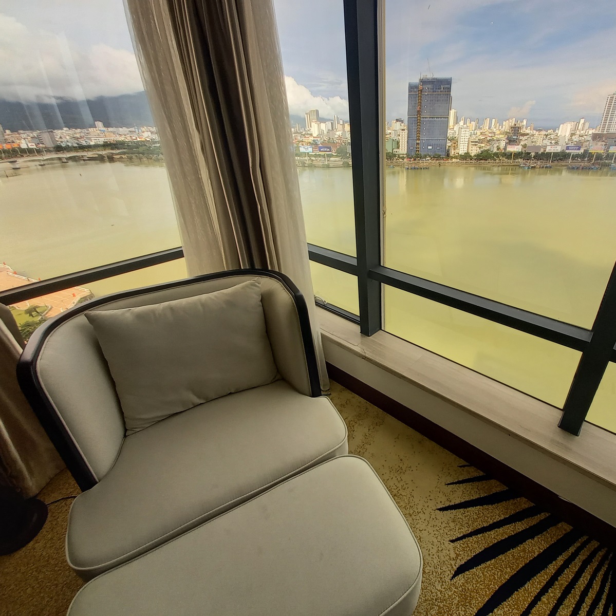 Guest Rooms & Décor: There are 99 rooms at Brilliant Hotel. A lot of them have good river- and city-views. The more you pay, the higher the floor, the bigger the windows, the better the views. However, at the time of writing, the difference in price was minimal, so it’s well worth paying the extra $10 for an upgrade. Rooms are quite large: all between 25-45m2. The general theme is modern, comfy, soft, and geometric. Floors are carpeted, chairs are cushioned, curtains are thick, decoration is minimal and fairly restrained, lighting is by lamps and spots. Most of the rooms feature bathtubs, and the larger room types also have living rooms with sofas. The main attraction in the rooms are the floor-to-ceiling windows and views. There’s not much ‘style’, but it’s good, generic, comfortable accommodation: plenty of light, space and amenities. In general, if prices continue to hover around $50/night including breakfast, the rooms represent value for money.