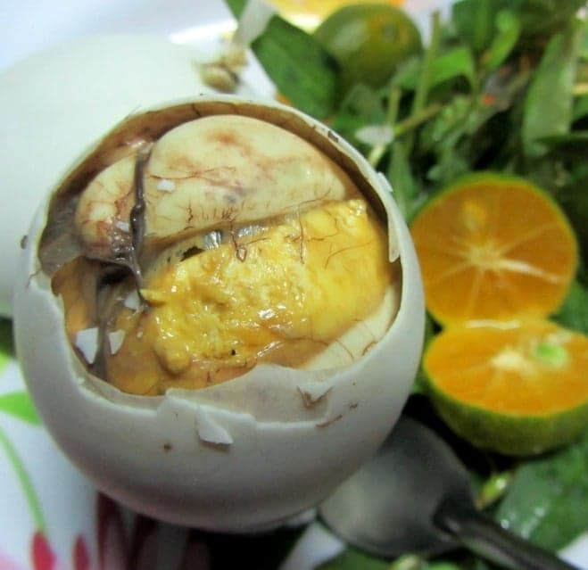 If you like eggs, you’ll love fetal duck eggs! They are, quite simply, ‘eggier’ than regular chicken eggs. Don’t be put off by the name or what they look like; this is a great, tasty, nutritious and cheap road-side snack anywhere in Vietnam.