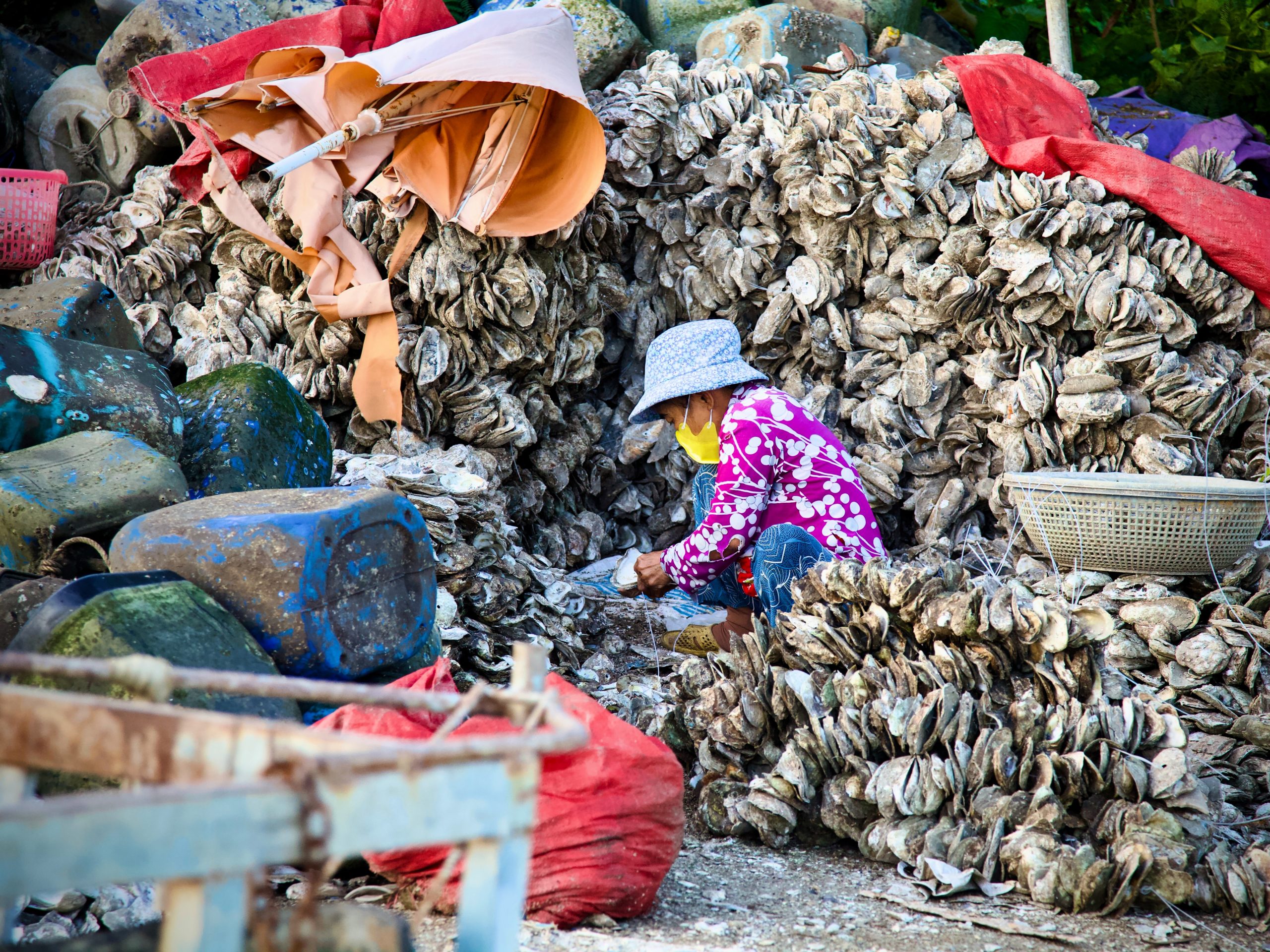 The small town of Cần Thạnh sits at the southeastern “toe” of the peninsula. For such a small place, this fishing village is home to a surprising number of spiritual sites. Perhaps most unique is Lăng Ông Thủy Tướng (the “Whale Temple”), which is right next to the village market and enshrines a 12m-long whale skeleton – the celebrity at the center of the Nghinh Ông festival held in September/October, where devotees pray for bountiful catches and safe ocean travels. The chợ (local market) is lively and interesting, especially in the morning. Cần Thạnh’s temples and wet markets help maintain the rural, peaceful vibe here but, increasingly, new developments on the edge of town are harbingers of rapid change. Heading westward past these new additions, the landscape gradually dissolves again into salt farms, fields, patches of coastal sand, small, scattered countryside homes and aquaculture ponds all the way to Đông Hòa village (see below).