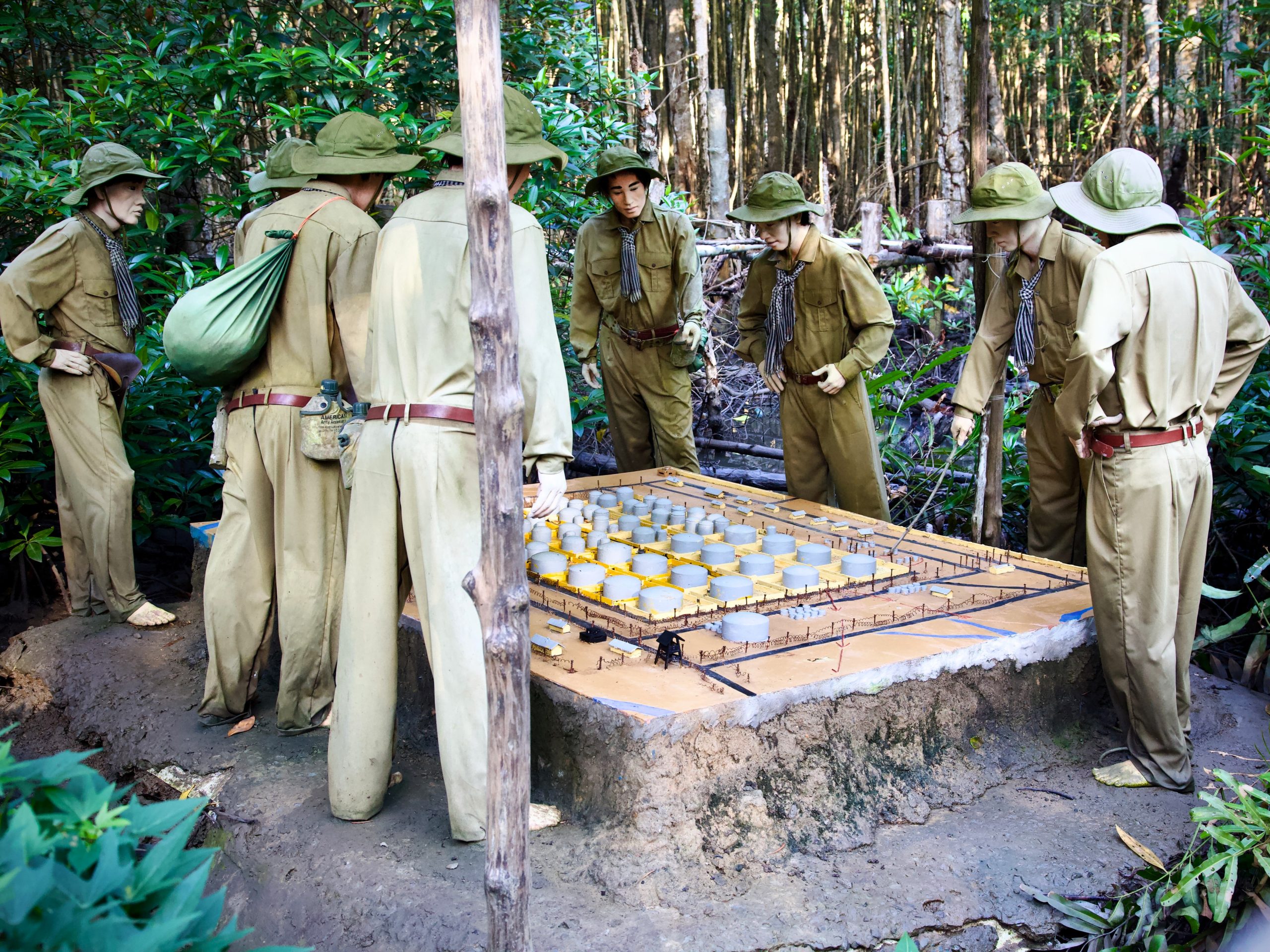 The base features mannequins dressed in various wartime gear and authentic equipment from the period such as weapons, communication devices and medicine. Plaques in Vietnamese and English detail the purpose of each hut and local military lore. For almost a decade, this was the danger-plagued home of the 10th Rừng Sác Special Forces Group – an elite unit of Vietnamese sappers, saboteurs, demolitionists, snipers and assassins who fought the Americans from the shadows of the swamps. Surviving in the heat and humidity of the swamp amongst mosquitoes, snakes and crocodiles, they evaded capture while executing daring raids against the far larger and technologically superior force of the U.S. military. They emerged from these mangroves to destroy U.S supply ships creeping their way up to Saigon along the nearby Lòng Tàu River. It was also from here that the notorious and successful attack on the Nhà Bè fuel depot was executed. There’s a great display detailing how this was done.