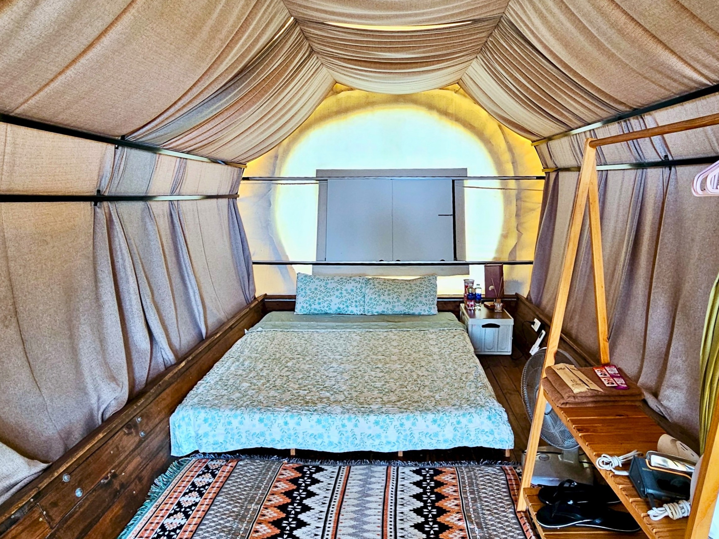 There are a fair amount of overnight options in the Cần Giờ area. Most fall within the budget to mid-range category, including a handful of resorts that were once beside the sea, but are now beside the VinHomes construction site and best avoided. The most comfortable options are several of the mini-hotels and local guest houses (called nhà nghỉ in Vietnamese) lining the main roads and back-streets of Cần Giờ, Cần Thạnh and Đồng Hòa. The most atmospheric options are camping and glamping spots. Below are just a couple of recommendations, but there are many more to choose from: