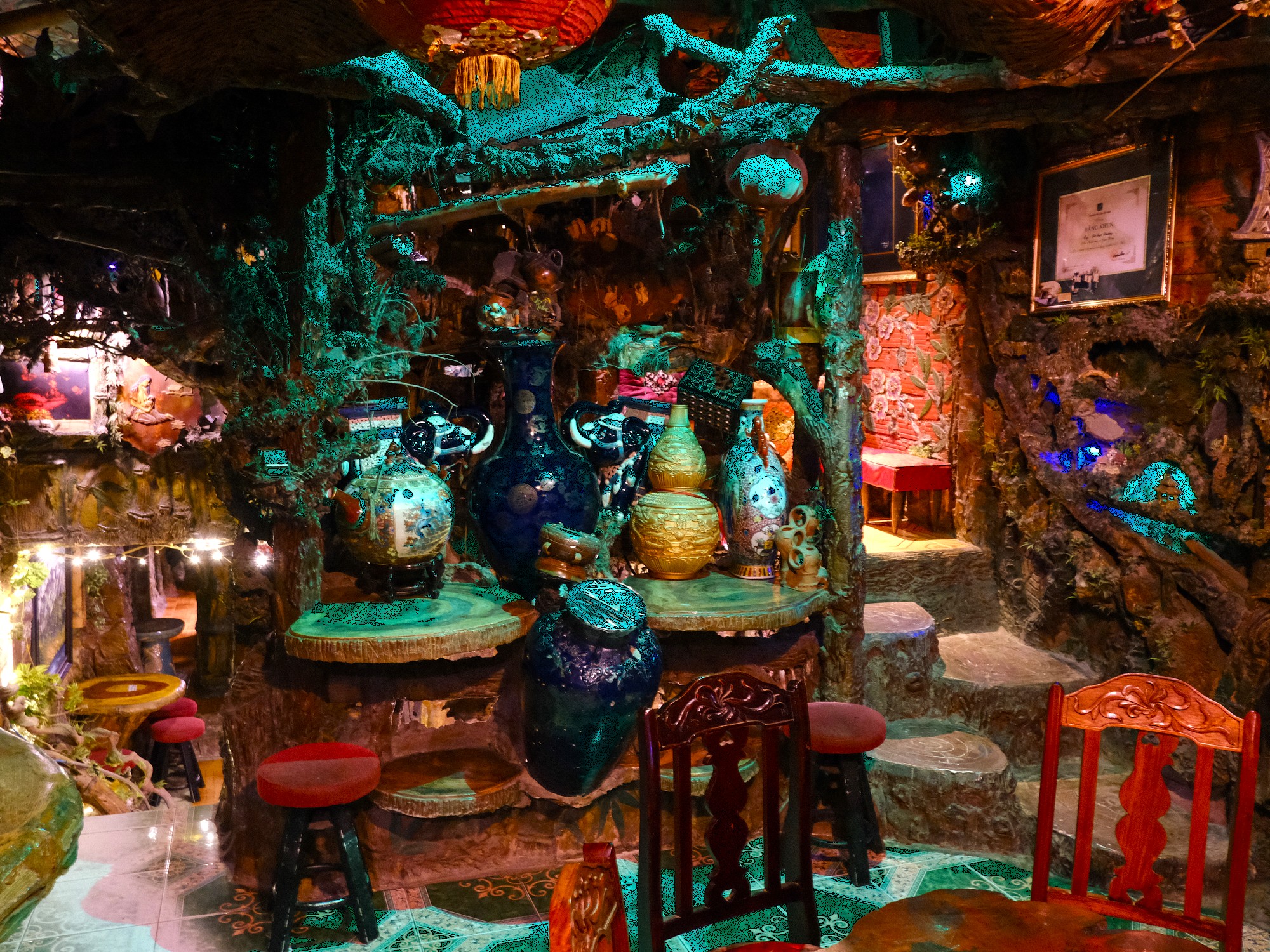 “It’s the same as the Crazy House”, said the manager. “At the Crazy House you pay 80,0000vnđ for a ticket. But here, your ticket also gets you a free drink.” It sounds absurd to compare the Maze Bar to one of Đà Lạt’s most famous kitsch tourist attractions, but the manager is not entirely wrong to do so. Maze Bar is a surrealist labyrinth of winding staircases and oddly themed grottoes across several floors. Its name is fitting. Moving from room to room evokes the same emotional heights as a hedge maze garden: curiosity, exploration and surprise.