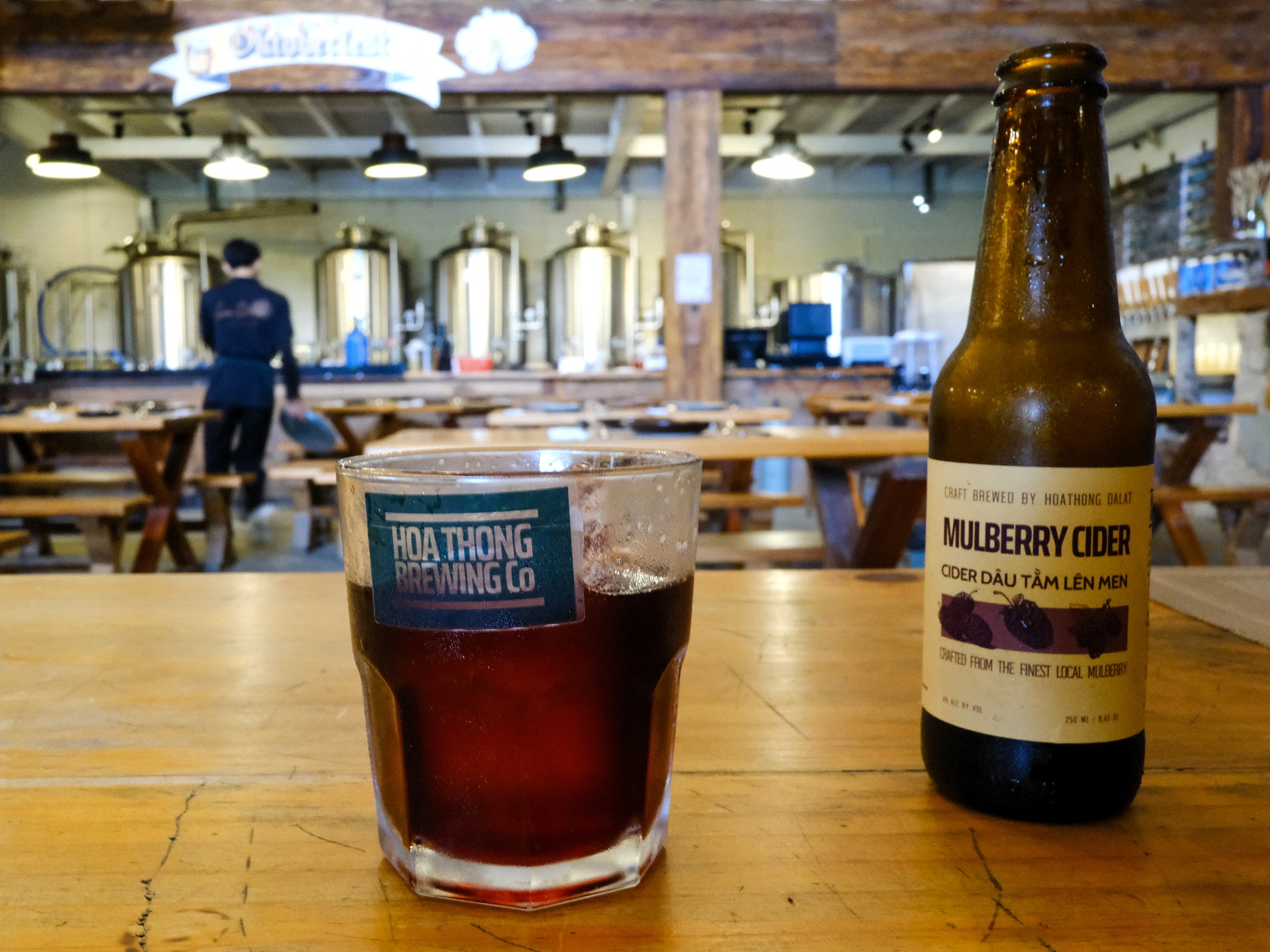 Less obvious, but equally interesting, is Hoa Thông Brewing’s small range of house-made liqueurs. These include dâu tằm (mulberry), mai anh đào (wild cherry blossom), mơ gỗ sồi (oak-aged apricot), and quýt D’Ran, a liqueur made from mandarins grown in the nearby town of D’Ran. Writing this at a moment when my own interest in beer has waned, these liqueurs are particularly appealing.