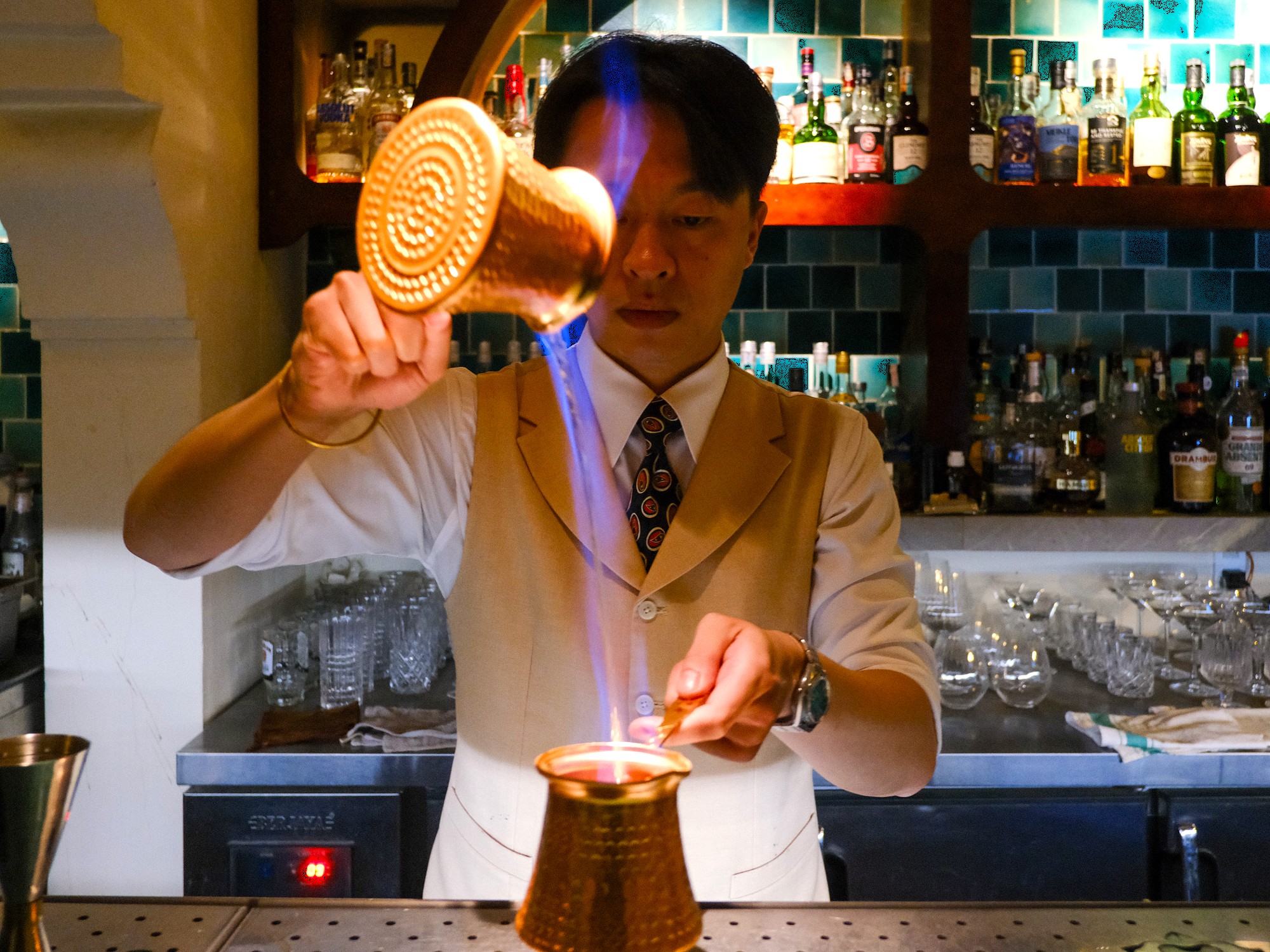 In some ways, THEJ resembles Fox’s Den, another nostalgia-driven cocktail bar in Đà Lạt, though here the theme is much more explicit. Neon lighting and collectables occupy most of the room, leaving little space for the bar to be anything other than juvenile playfulness. But whose nostalgia is it? There were moments of dissonance in the experience that didn’t resonate with me. The arcade machines, for example, are homemade and run a programme designed to emulate older systems rather than the machines on which the games were originally played. Sweet potato chips arrive alongside the cocktails, a detail that pulled me back to Vietnam rather than into an imagined past. When the staff suggested I try the Harry Potter cocktail, I declined. “I hate Harry Potter” said my inner child, just as it had done almost 30 years ago. Embarrassed by my immature outburst, I quickly opted for the Saiyan instead, a reference to Dragon Ball Z, a cartoon that had no bearing on my adolescence growing up.