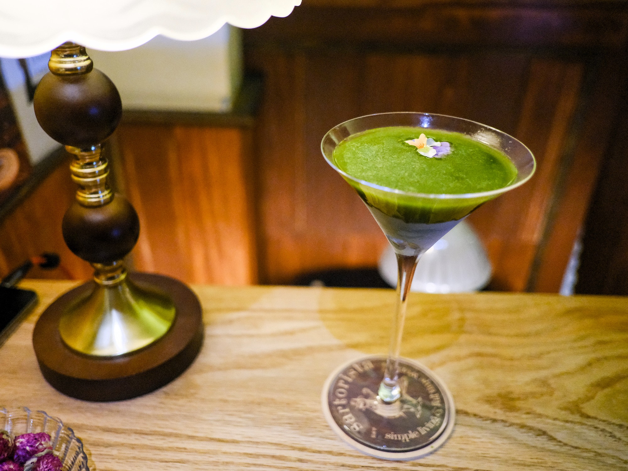 Mizu Bar came highly recommended for bespoke cocktails in Đà Lạt. Located in an unassuming neighbourhood on the city’s west side, its discreet entrance makes you question whether you’ve arrived at the right place. Entry requires calling the number attached to the gate, so a member of staff can unlock it and escort you inside. From there, you pass through a garden space scattered with furniture belonging to an affiliated café which opens during the day, before reaching the bar’s sliding front door. Inside, the venue is narrow and intimate. A long bar runs down the left-hand side, lined with stools, while a small annexe at the back seats approximately six additional guests. Lighting is carefully controlled, and the hum of conversation is accompanied by a tasteful playlist of light jazz and jazz-adjacent tracks.