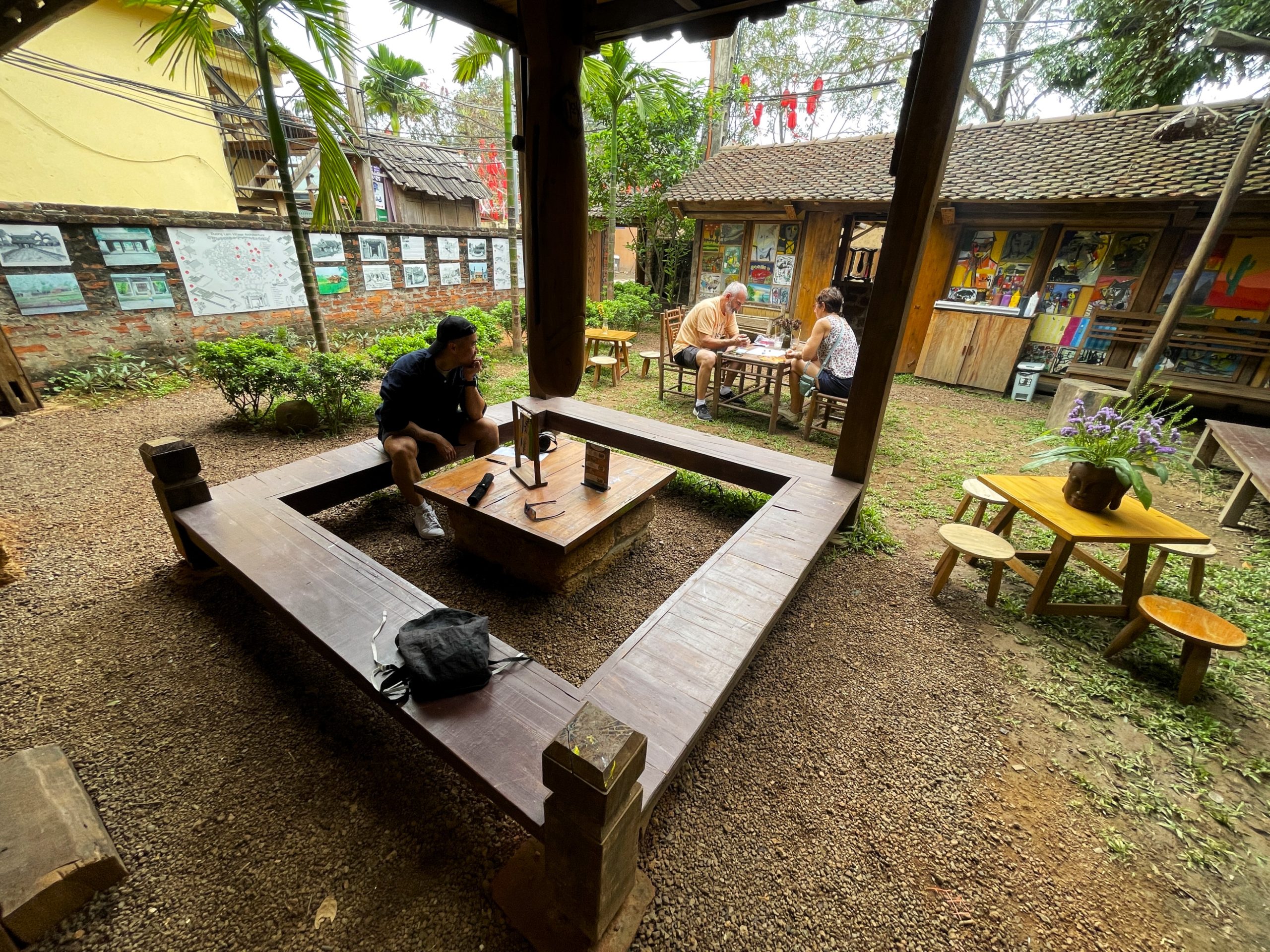 Grounds & Layout: The accommodation is spread between two plots not more than 50m from one another on Đường Lâm Street. The eastern plot, the first you come to if arriving in Đường Lâm through the ancient village gate (as most do), holds a wooden house on stilts with a handful of the cheaper rooms, a garden café and a shadow puppet theatre (see Activities). The western plot, separated from the other by the Cơm Quê Hùng Hạnh restaurant (not part of the Đoài family) holds the reception, the tour desk, a small garden and a handful of more expensive rooms arranged over two floors. Both spaces feel tight and the gardens are small, but this is in-keeping with the cosy nature of ancient Vietnamese villages, and the hotel never feels crowded, even when full.