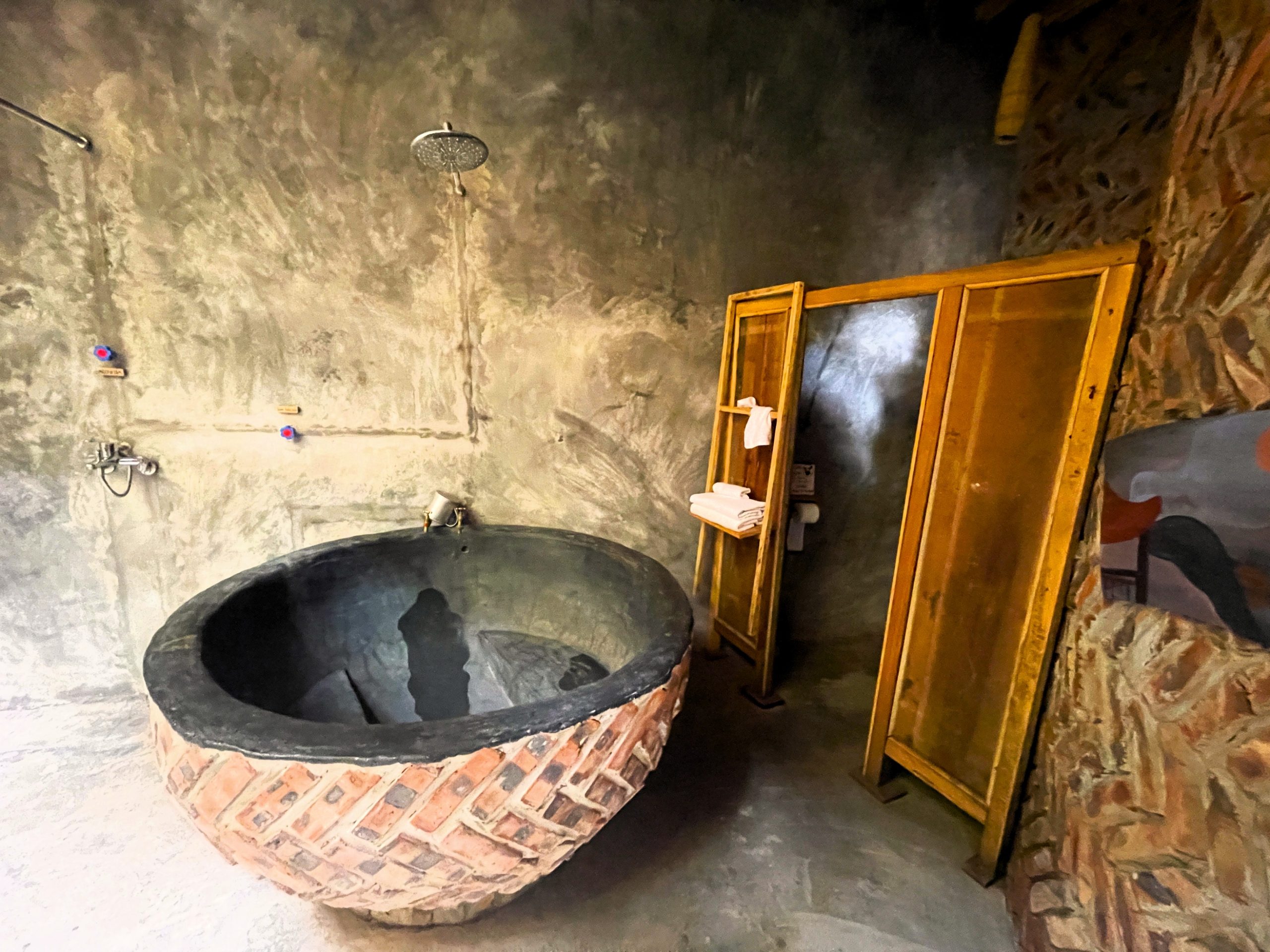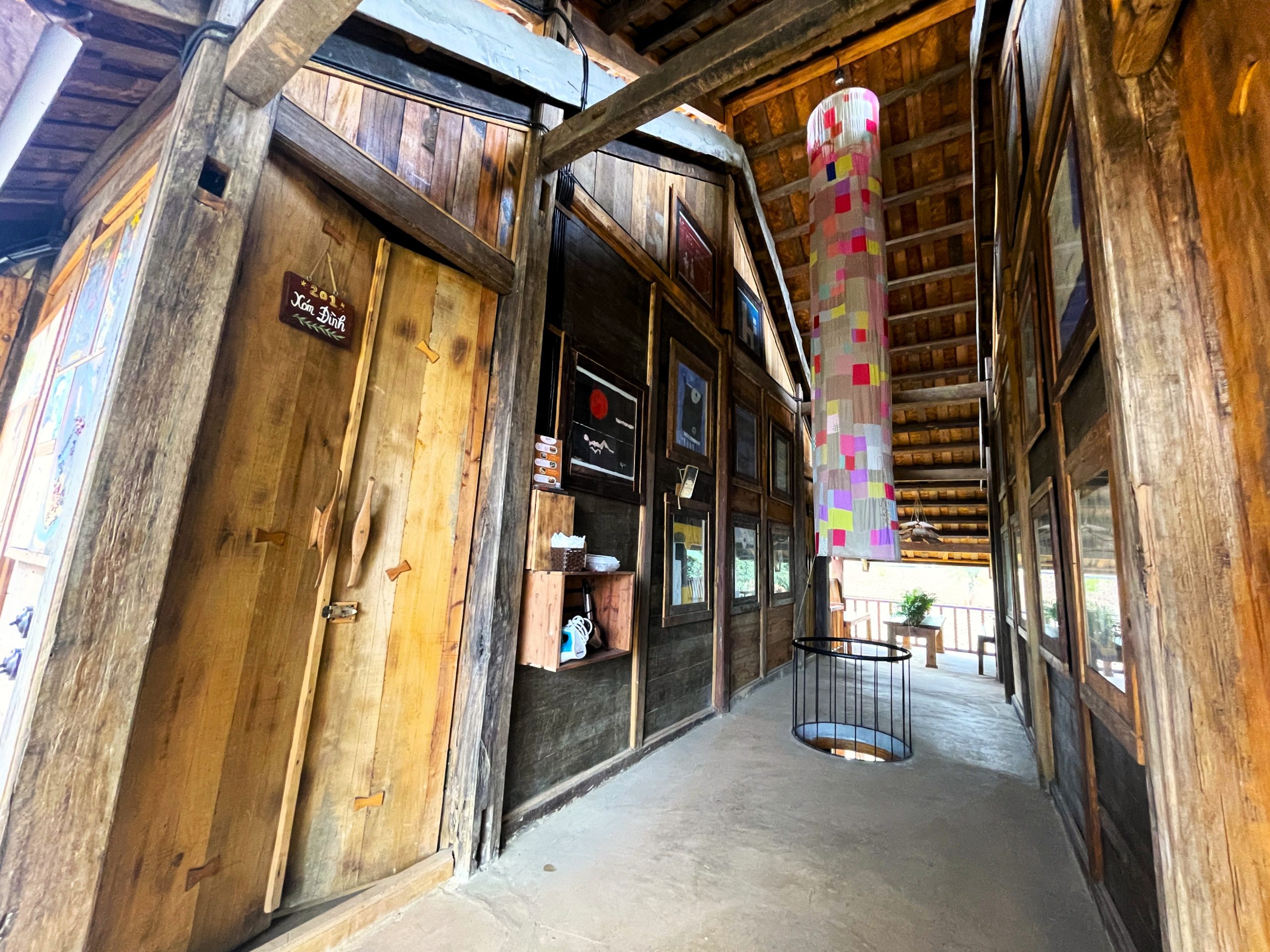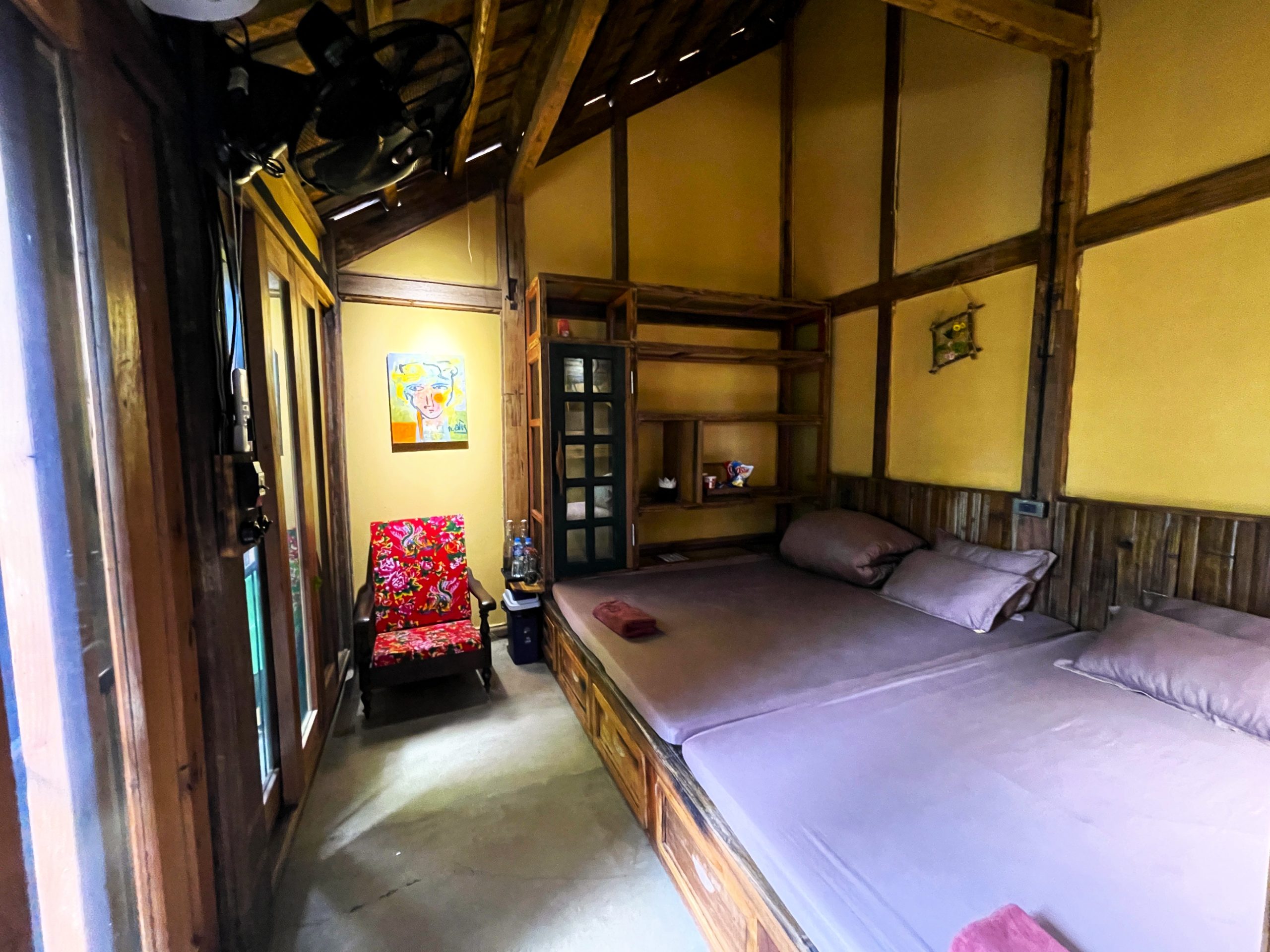 Rooms and Décor: There are less than a dozen rooms at Đoài Tour & Homestay spread equally between two plots. The wooden house on stilts has timber frame rooms that feel vaguely like a mountain lodge, with firm beds, limited spaces and shared bathrooms and washing facilities. The plot with the hotel reception holds the more expensive accommodation, with private outdoor bathrooms and slightly larger rooms. Overall, the rooms are interesting spaces that creatively invite plenty of natural light without sacrificing too much privacy.
