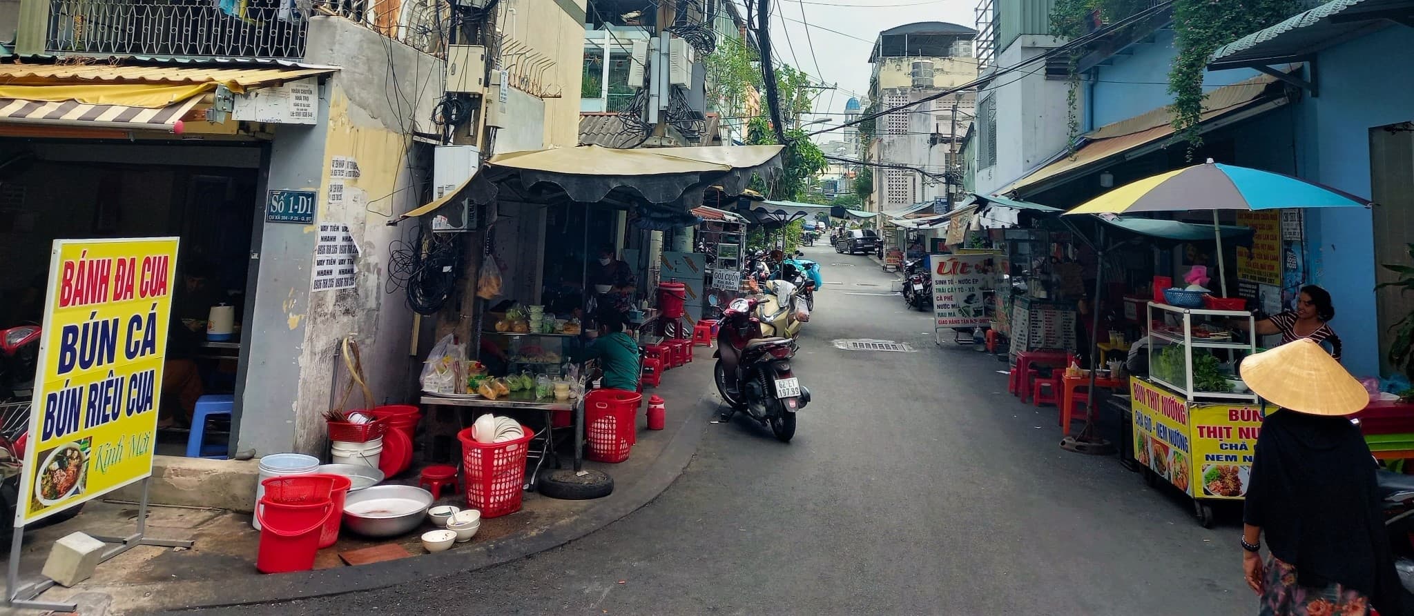 Bounded on three sides by some of Saigon’s biggest, busiest roads – Điện Biên Phủ, Xô Viết Nghệ Tĩnh and Ung Văn Khiêm – Ward 25 occupies a kinetic corner of Bình Thạnh District, pulsating with youthful energy thanks to the presence of several large universities. The local neighbourhood economy thrives on the student population: cheap food stalls, fashion stores, 24-hour cafe workspaces, bubble tea outlets, English language centres, laundry services, convenience stores and low-rent, diminutive dormitories. When we moved into the area, the roads in our immediate neighbourhood were named by number: D1 Street, D2, D3, D4 and so on. Connecting these were dozens of narrow alleyways lined with residential townhouses. Despite the burgeoning, budget student life out on the streets, life in the alleys was calm, quiet, family-oriented and relatively affluent. To walk the 200 metres from our house on alleyway 24 to D1 high-street was to go from a leafy, sleepy suburb to a lively, vibrant inner-city.