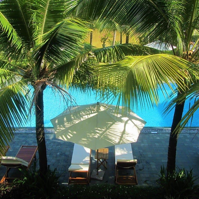 Tucked away down an alleyway in an affluent, local Hoi An neighbourhood, the Waterway Resort is walking or cycling distance from the old quarter and the beach. In my opinion, this location works to its advantage: Hoi An’s old town, as beautiful and fascinating as it is, gets very crowded these days, so it’s nice to be staying in an accommodation slightly away from the tourist bustle. The Waterway Resort is situated on a lush patch of land fronting the river: a peaceful, calm setting to base yourself while exploring the area. For the best rates (and to avoid the crowds), try to visit during the shoulder season: September/October or April/May.