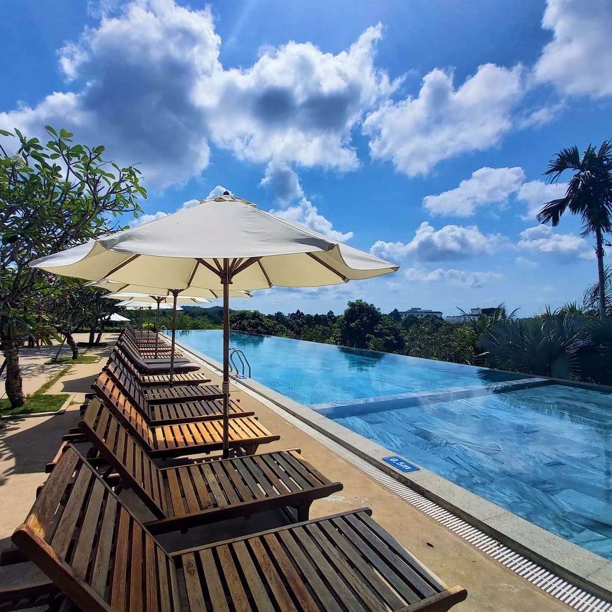 Pools & Activities: Because Lahana is on the ‘wrong’ side of the seafront road, it doesn’t have direct access to the beach. However, the resort makes up for this with a fabulous infinity pool at the top of the property overlooking the hillside, trees, and out to sea. The pool is highly photogenic, but it’s not just a prop for social media: it’s also long enough for swimming laps. Beneath the pool is an airy, open-sided gym, billiard room, kids corner and conference centre, all of which are tastefully designed. There’s also a spa. The gardens are pleasant to walk around: identifying the tropical flowers and trees, and stopping on the benches under wooden gazebos to watch the carp in the pools. The sands of Long Beach are just a 5-minute walk west of Lahana, across Trần Hưng Đạo Street. Motorbikes are available for rent or the resort can organize numerous excursions around the island.