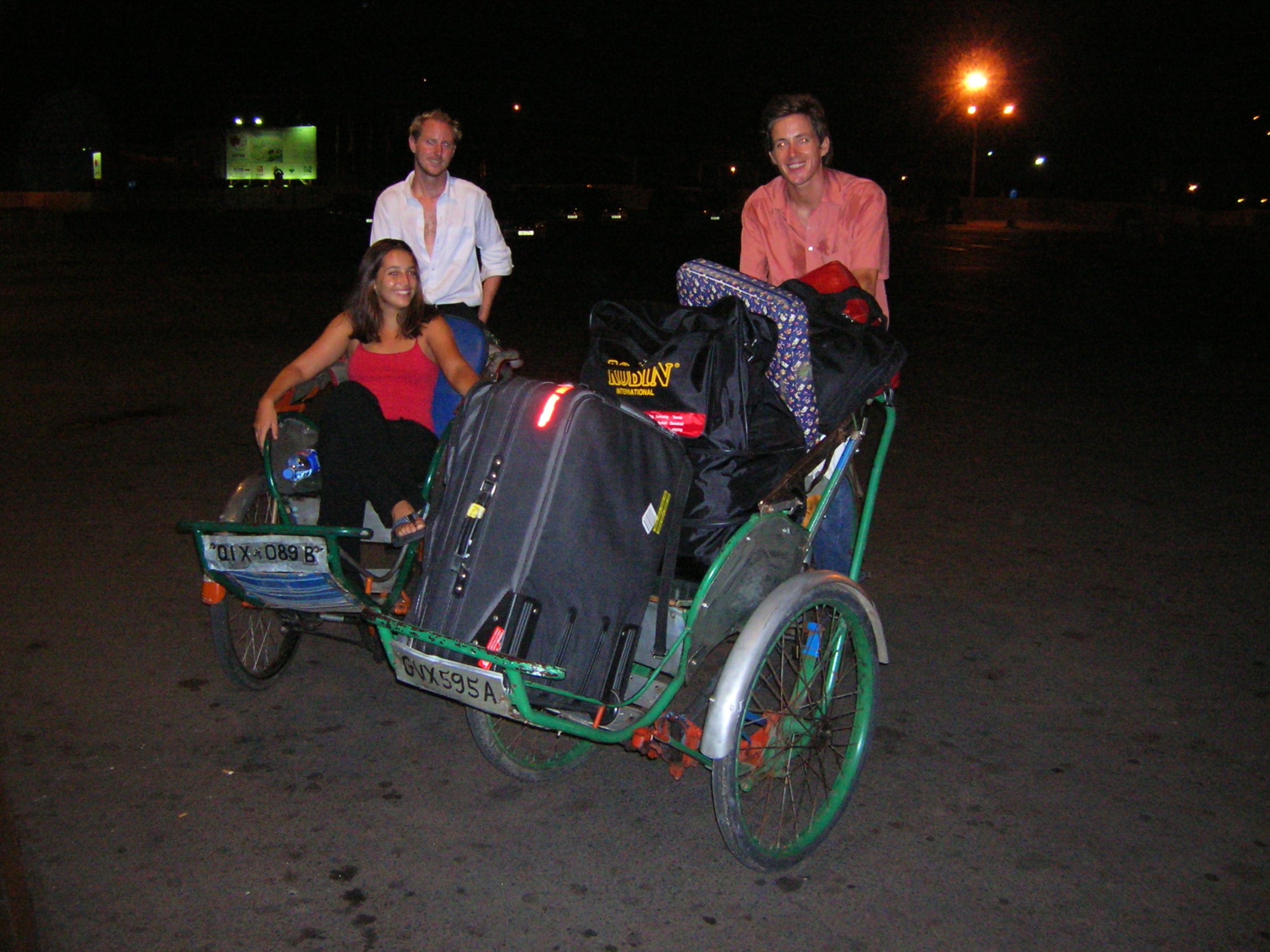 In the first photo, Sam and I are riding Alexis and her luggage in two cyclos to the airport to catch her late night flight back to the U.S. The three of us met on the TEFL course back in October, 2005, and became good friends. On this, Alexis’ last night in Vietnam, we borrowed two cyclos from two (very trusting) drivers in Phạm Ngũ Lão, Sài Gòn’s notorious nightlife hub, and rode them all the way to Tân Sơn Nhất Airport as a special farewell. Sam and Alexis were two of my closest friends during my first year in Vietnam. The three of us stayed in touch after they both left Vietnam. Today, I remain close to Sam, emotionally at least, as we very rarely see each other in person.