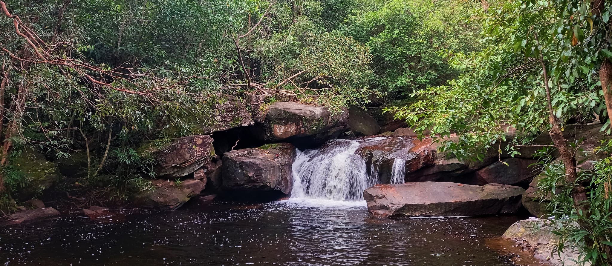 The most northerly and least developed of all the streams on the loop, Suối Mơ is deep in the jungles of Phu Quoc’s interior. At the time of research, Suối Mơ was the only stream not yet marked on maps. Finding it is half the fun. A paved lane leads through attractive farmland and orchards before dead-ending in the brush. From here, a sandy dirt path continues into the trees. Unless you want to go for a long (and pretty) hike through the jungle, make sure you take the right fork on the pathway, heading due southeast. It’s just a 10-minute walk before you start to hear and feel the presence of Suối Mơ down in the gully. Smaller paths lead through the jungle to the water, from where you can boulder-hop upstream as far as you like, before finding a nice spot to settle down and bathe. (Check the marker on my map, and switch to satellite view to see the pathways leading towards the gully.)