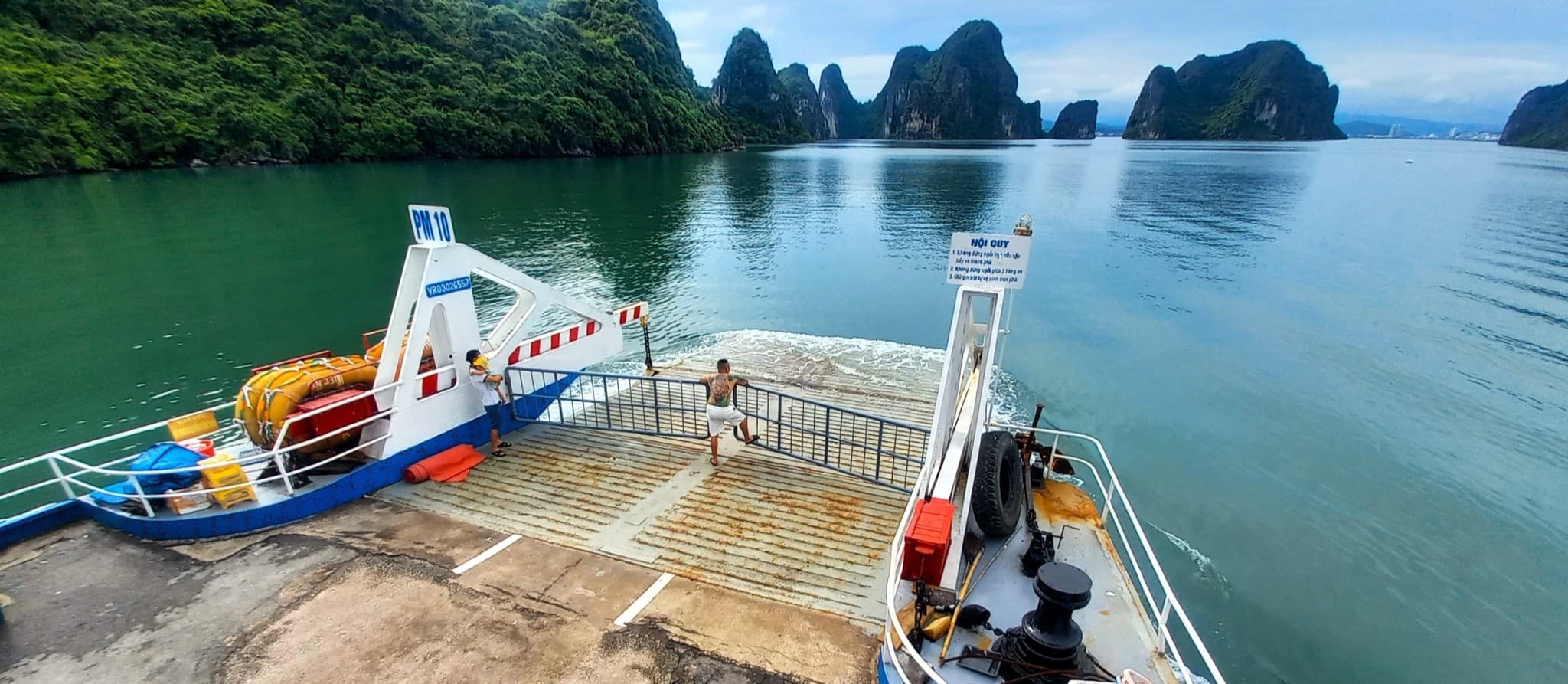 The most scenic public ferry in Vietnam (probably) and the cheapest way to cruise through the limestone karsts of Hạ Long Bay, the Tuần Châu→Cát Bà vehicle ferry is a 1-hour voyage connecting the mainland with Cát Bà Island. The boat can accommodate passengers, bicycles, motorbikes, cars, minibuses and small trucks. It’s cheap, scenic, convenient and runs several times daily in both directions. The 60-minute voyage is like a mini-Hạ Long Bay cruise, passing through giant natural gateways formed by soaring, jungle-clad limestone pillars rising from the sea like a dragon’s tail. Operated by the Tuần Châu Group, the ferry (phà Tuần Châu→Gia Luận in Vietnamese) sails from Tuần Châu Island (near Hạ Long City) to Gia Luận, an isolated port at the north of Cát Bà Island. This ferry route is the most scenic and exciting way to get from the mainland to Cát Bà Island: all other options are either more expensive, more crowded, more boring, or can’t accommodate vehicles.
