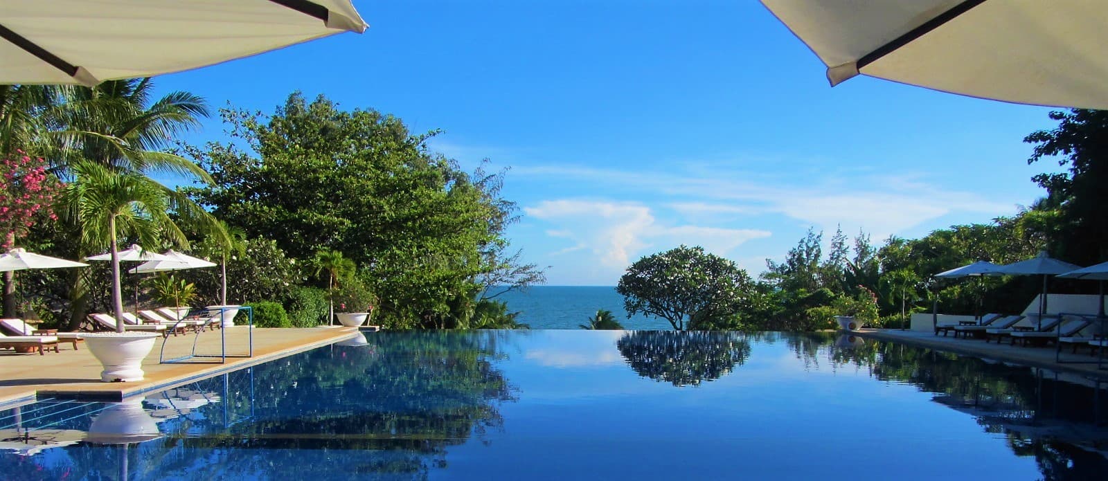The long, palm-lined beach is dotted with some large rocks, but there’s always a lifeguard on duty to warn guests if conditions get too rough. A walkway runs along the shoreline, leading to the bamboo spa houses, where all number of relaxation treatments are available. There are two pools; one at either end of the resort’s grounds. The infinity pool is a beautiful sheet of turquoise water, ringed by tropical plants, with the ocean lapping the beach just 10 metres away. The pool bar serves ice cream and cocktails.