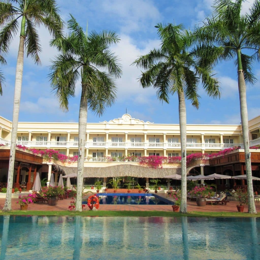 Resort Grounds & Layout: During the planning of the Victoria, the then French owners decided to limit the building to 4 floors to avoid marking the skyline. The hotel is designed in Cochinchine French-colonial style. Aesthetically, it matches the style of genuine colonial architecture around Vietnam: tiled floors, wooden furnishings, ochre painted walls. The style works if you’re a fan of nostalgic Indochine décor, but personally it’s an aesthetic that doesn’t sit entirely comfortably with me.
