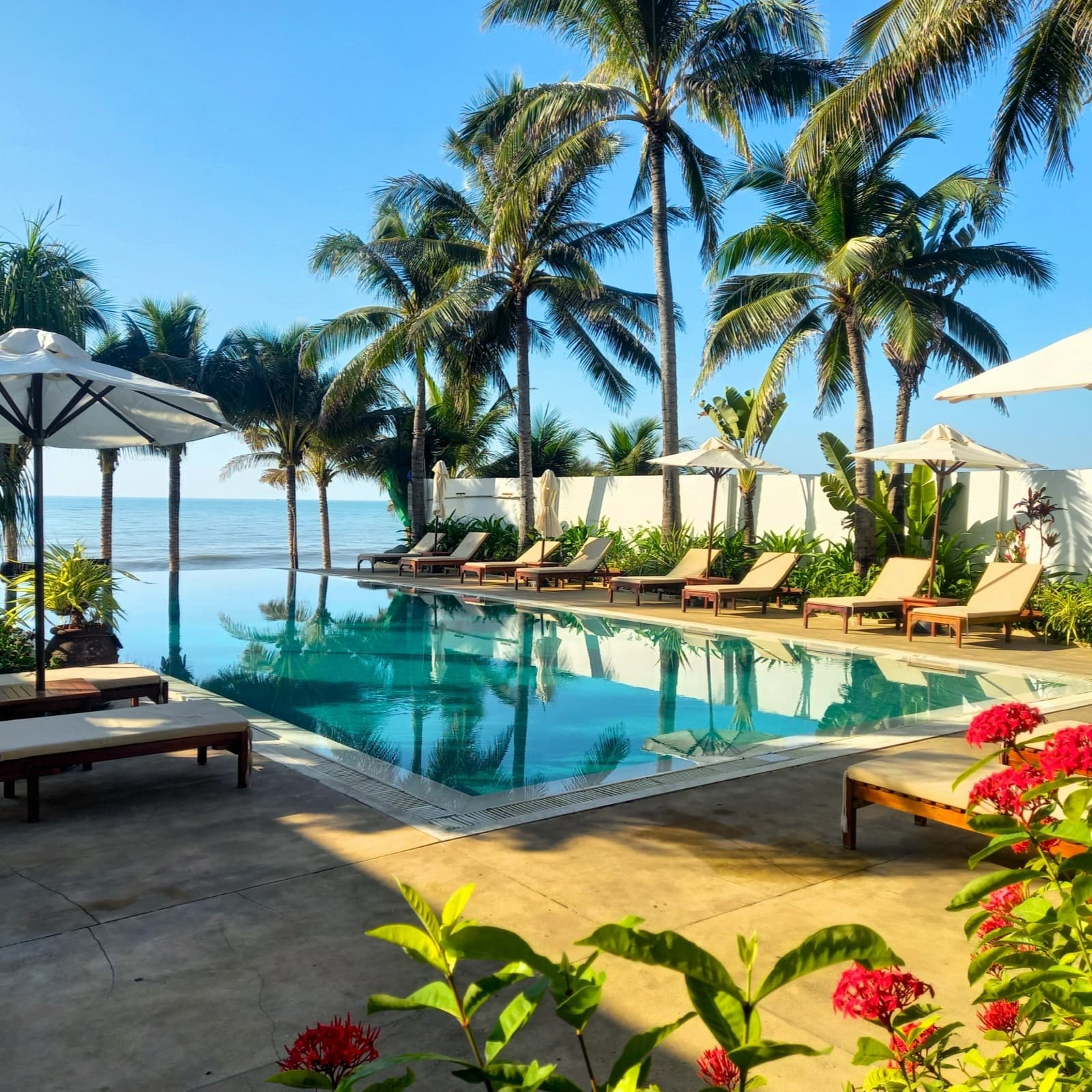 A contemporary, low-rise, small-scale boutique resort on Mũi Né beach, Villa Aria offers excellent mid-range standards with tastefully appointed rooms, a classy open-sided restaurant and deck, and a beautiful infinity pool. With only a handful of guest rooms available, Villa Aria never feels crowded, even when it’s full. Occupying a relatively small plot of beachside land, Villa Aria makes the most of its space, with tropical fruit trees and flowers growing up between two rows of two-storey structures. Rates, including a good breakfast, hover between $70-$100 per night depending on the season. The resort’s beachfront, like the rest of Mũi Né, has recently been laid with Geotubes (enormous sandbags) in an attempt to stop erosion, but is in a pretty good state compared to other parts of the bay. After a post-pandemic slump, tourism in Mũi Né is booming again, helped by the opening of the new expressway (CT01), which has reduced travel time from Ho Chi Minh City (Saigon) to just 2 hours. What’s more, the new airport is set to open within the next year or so. [BOOK HERE]