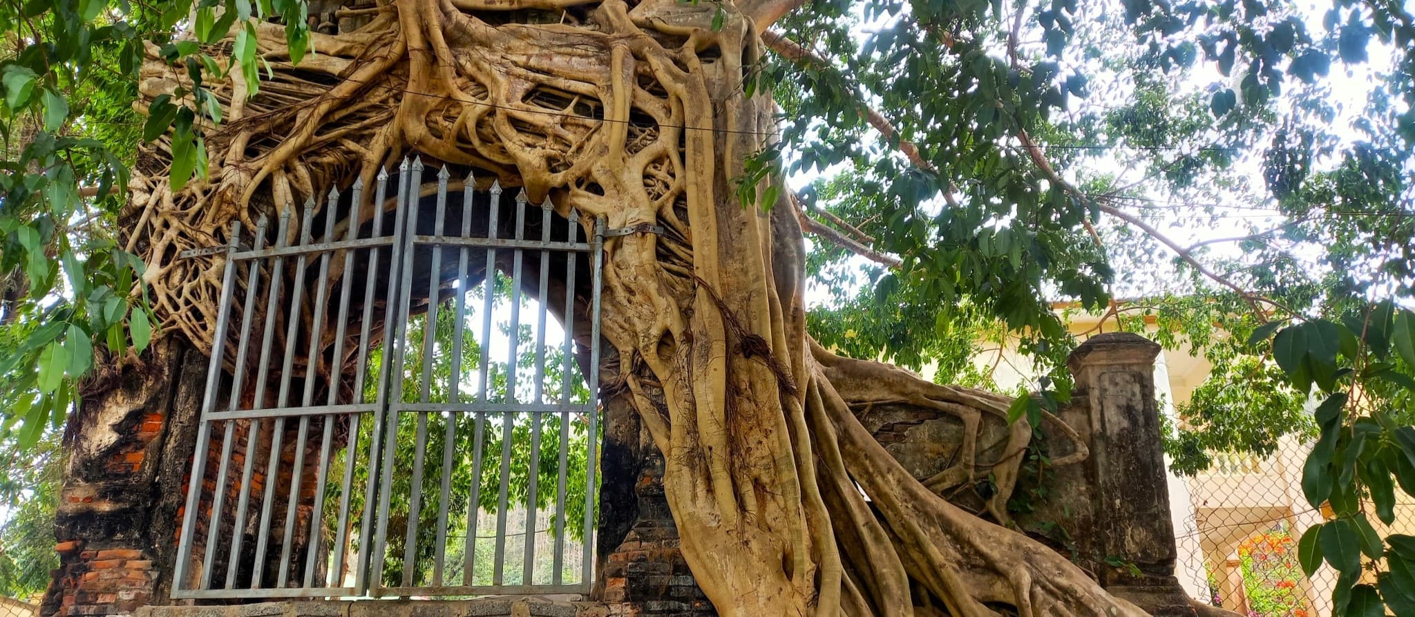 So intertwined are the tree and the gate that it’s as if the two were created together by design in an ancient example of biophilic architecture. Neither the gate nor the tree would be as impressive without the other. The gate’s origin and date of construction are lost to history. Just as with Yên Hòa Tower, no documentation has yet been found that refers to Phủ Tương Gate (Cổng Phủ Tương). But the gate must date back hundreds of years; even the banyan tree, in order to grow as it has, must be centuries old. A clue might lie on the opposite bank of the river, where Cửa Rào Temple (Đền Vạn Cửa Rào) marks the burial site of Đoàn Nhữ Hài, a writer and general of the Trần Dynasty who died in battle fighting Lao forces here in 1335.